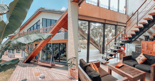 挑高設計的客廳,是都是充滿藝術感的老闆一手設計!
