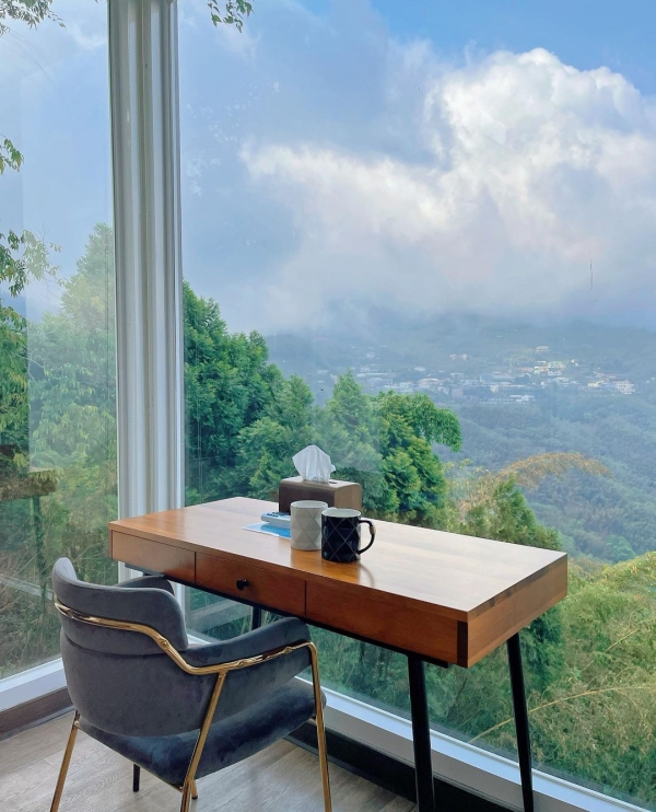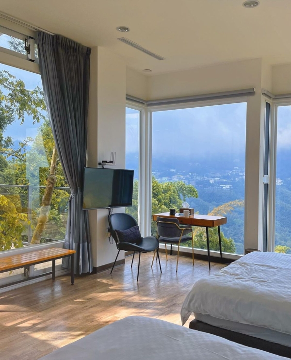 前往阿里山國家森林遊樂區的路上,就坐落在小山脊上俯瞰公路的山谷,房內超大落地窗賞日出雲海,還有陽台可以到戶外森呼吸!