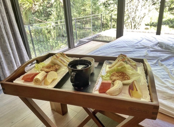 清水模建築設計,室內的建材及家具都是實木!可以聞到房間內散發淡淡的檜木香,隔天還可以享受民宿老闆直接把早餐送到房間享用!這是最幸福的一件事,讓人有回家的感覺!