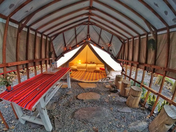 園區有各種帳篷,帳內設備齊全,備有彈簧床、棉被、枕頭等,每座帳篷上方都有加蓋鐵皮屋頂,免擔心雨水滲進來!