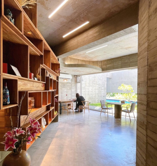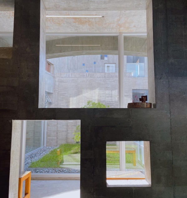 花蓮隱藏版住宿,灰色清水模建築搭配大自然色調家具,每一個角落光灑進感受到光影的美!新鮮現做無菜單料理,早餐物超所值!