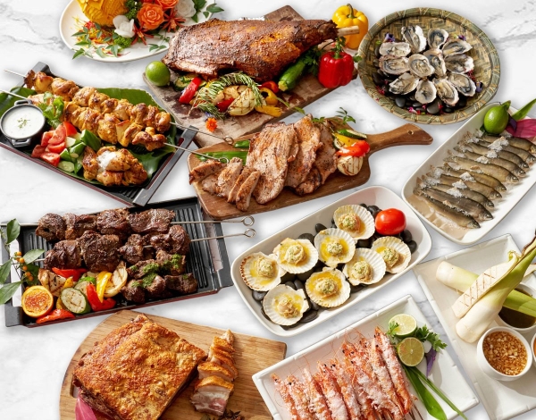 提供各國美饌的自助餐廳「Sunny Buffet」16樓挑高空間設計,天花板選用玻璃帷幕設計,引入自然光線與星空景色!
