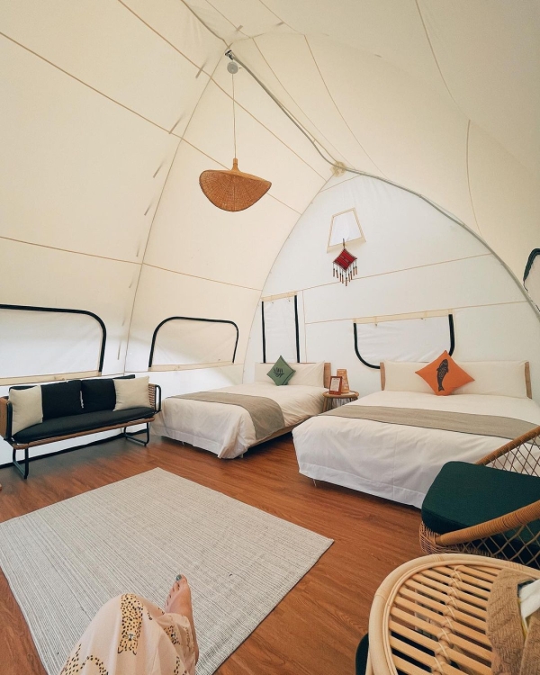 ・位於戶外空間的 5 米帳篷,內有兩張雙人床。