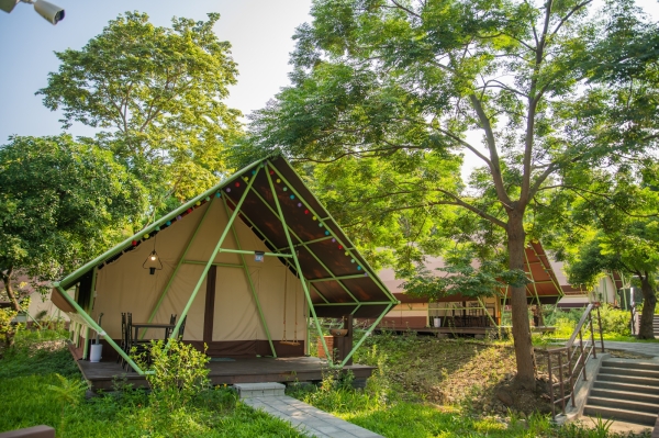 園區共有26座帳篷,分成2人及4人房型,每帳有12坪專屬大空間、挑高5米為設計,讓人毫無壓迫感超讚!