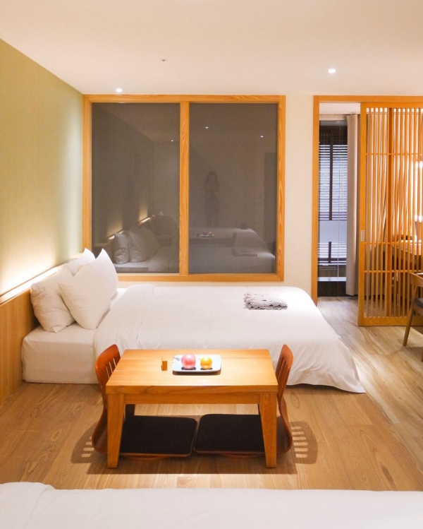 超大住宿空間加上一旁的榻榻米、木質床板、日式桌椅及拉門,完全就像置身在日本啊!