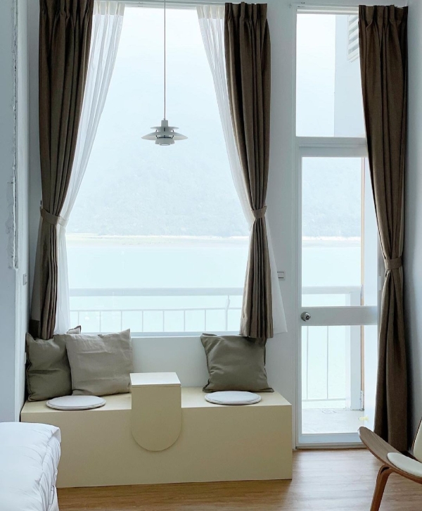 位於日月潭朝霧碼頭旁,極簡純白色系!遠遠的就可以被這質感所吸引,讓人好像一秒至深在韓國!搭配唯美的湖景,不論是用餐或是住宿都超療癒!