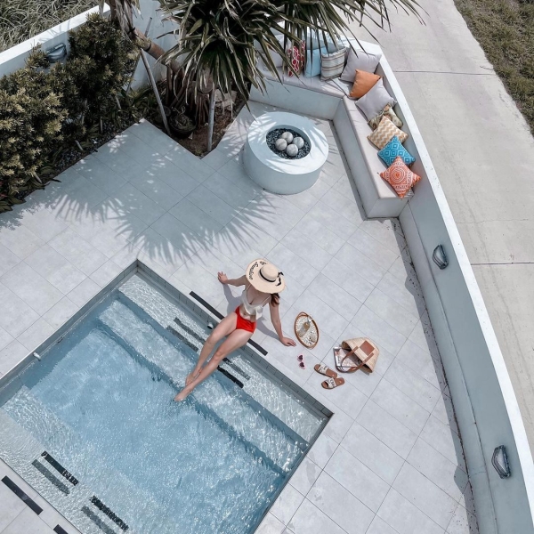 倘若在沙灘上曬怕了就在戶外戲水區躲豔陽,拍個美照、泡泡水清涼一下! 小朋友總是流連忘返這個小戲水池。 -