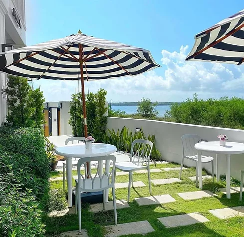 HSUEH INN房間間間皆有海景&泡澡浴缸,戶外公共區備有遮陽傘桌椅與沙灘椅,不管在室內室外都能望海享受。 -