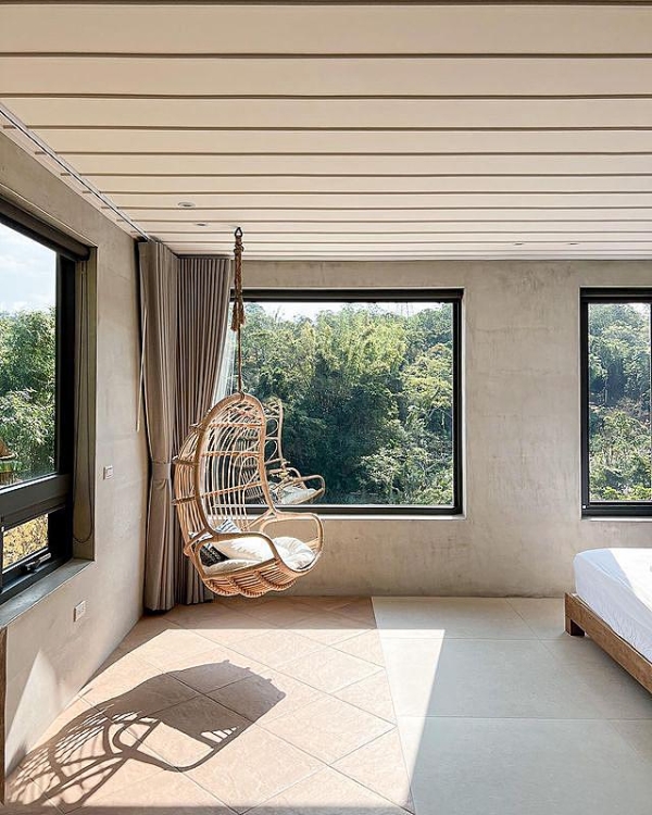 挑高設計顯得房間更寬敞,房內還有網美們最愛的吊椅,絕佳的隱密設計,不論家庭旅遊或者朋友聚會同樂,都很合適!