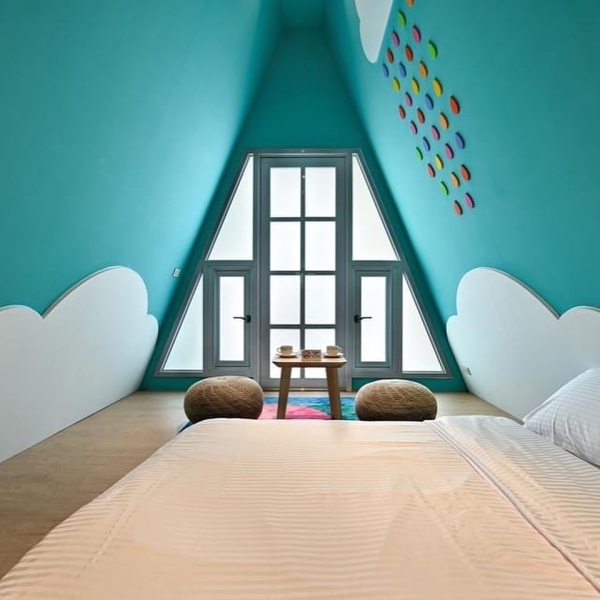 最熱門的就是這超可愛的彩虹合掌村啦!三角設計特別又可愛,多種主題風格任選,提供雙人和四人房,絕對是孩子們的最愛,入住就不想離開啦!