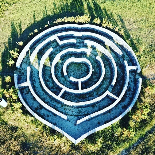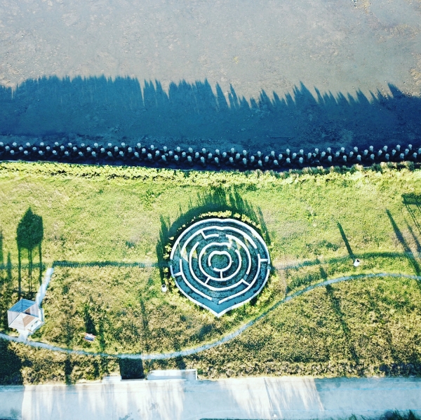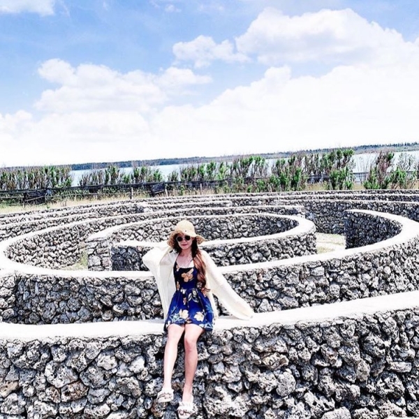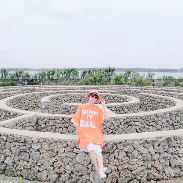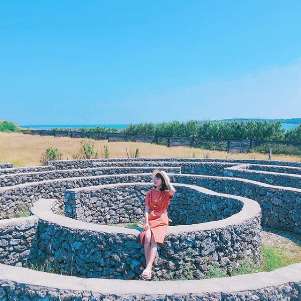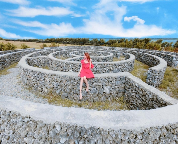 澎湖有許多房子是由硓?石砌成,在東石環保公園裡的這座心型迷宮也是~所以同時也稱「硓?石迷宮」,由於離海不遠,拍照的時候還能看見後面的大海!