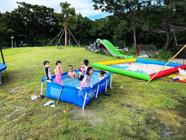 最棒的還是寵物友善的露營區,有毛小孩的朋友們更可以帶著牠們來放風,園區內還有兒童遊戲池、戲水池,絕對是親子寵物露營最佳首選處!