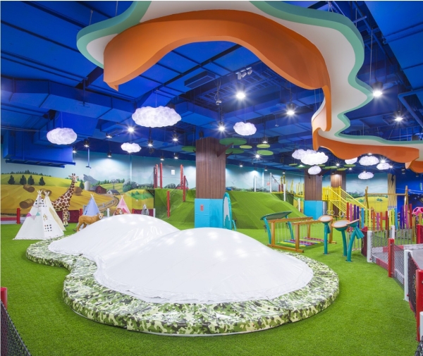 生動露營地、刺激滑草坡、擬真動物聚落、豐富草地遊樂場, Q軟彈跳雲,動靜皆宜享受閒適運動樂趣。