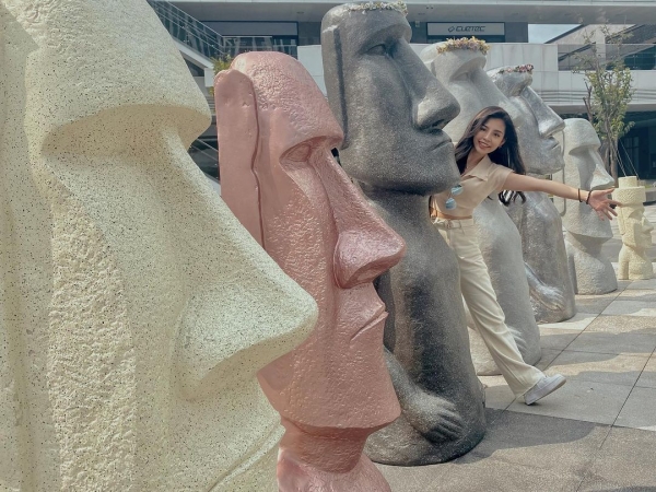 一秒飛復活島免費爽拍「巨大摩艾石象」,總共有34座不同大小以及顏色的石象,B2還有文創市集有各式周邊商品喔~一整排呆萌造型隨你怎麼拍都可以~