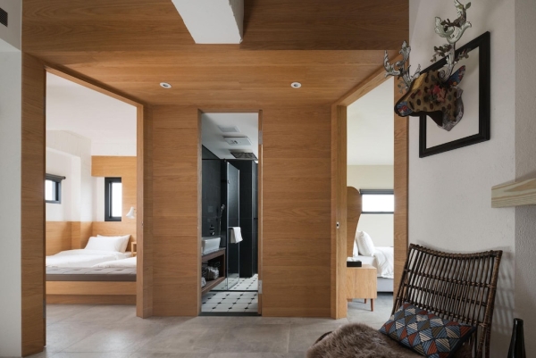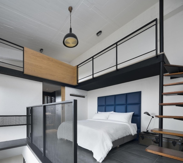 溫暖的老壁燈照在雕花的鑄鐵手把上,透露了101位於二樓的隱密出入口。一落的紅磚、木格子牆,棧板堆砌的沙發、整列的排窗,和一眼望去滿滿的四季農田景致,呈現最具穀倉特色的黑宅。黑宅唯一2樓層設計,空間包含二、三樓。