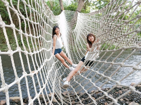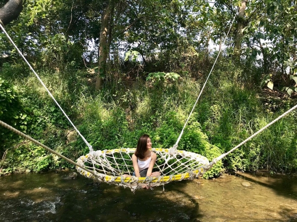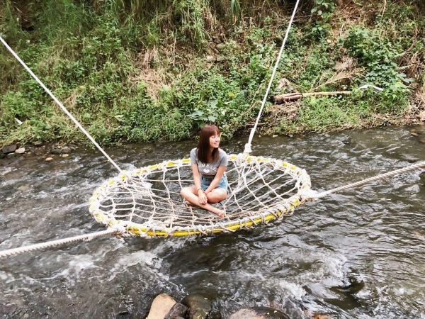 其中「水中鞦韆」絕對是一大亮點!悠閒地躺坐在溪流上鞦韆搖晃,聽著潺潺水聲、欣賞眼前綠意美景,盡情沉浸於大自然當中好Chill!