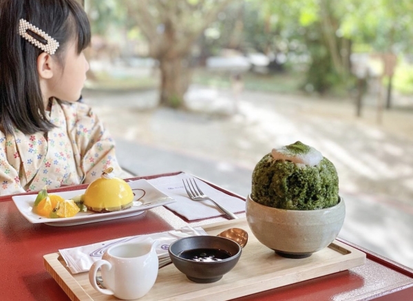 泡完溫泉就要享受美味的精緻的甜點,抹茶控的最愛!日式抹茶刨冰,穿著浴衣坐在日本風格的飯店超享受啦!