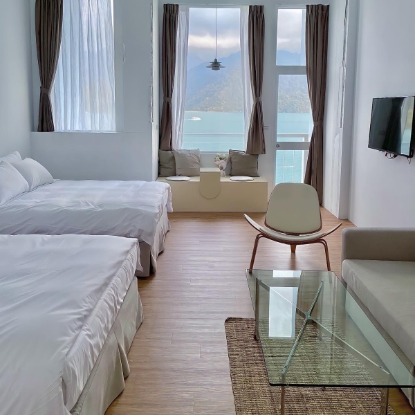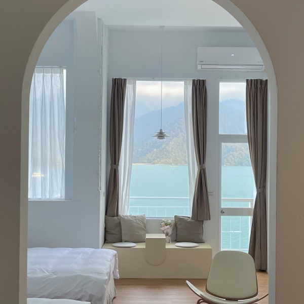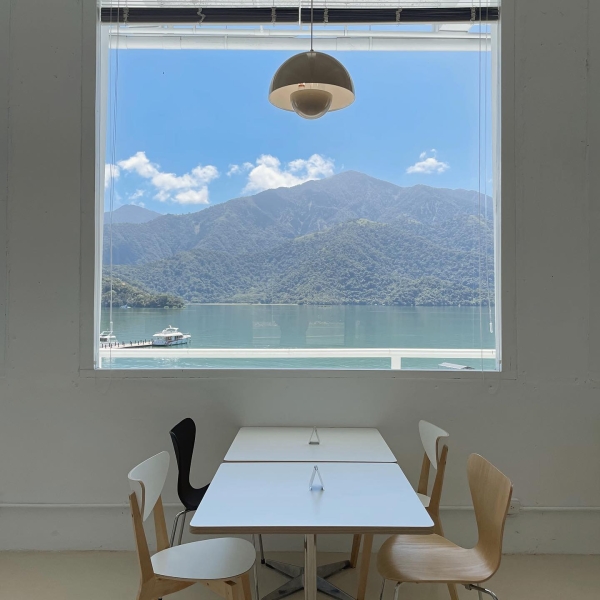 位於日月潭朝霧碼頭旁,遠遠的看就被吸引了!一樓為咖啡廳,樓上為湖景住宿,純白色調搭配北歐風家具,整個質感爆表!