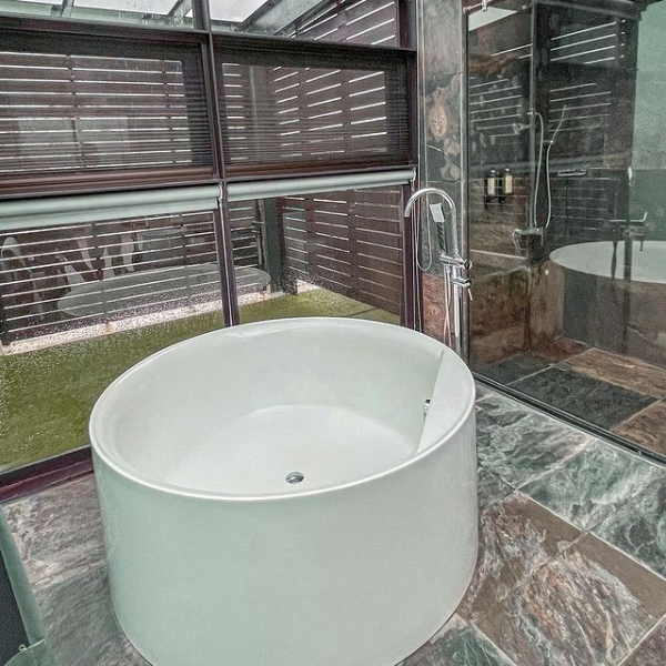 浴室都為開放式設計,浴缸乾淨寬敞一人泡澡絕對舒適,可邊泡澡邊看外頭田園景緻享受絕佳時光!
