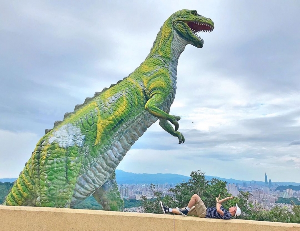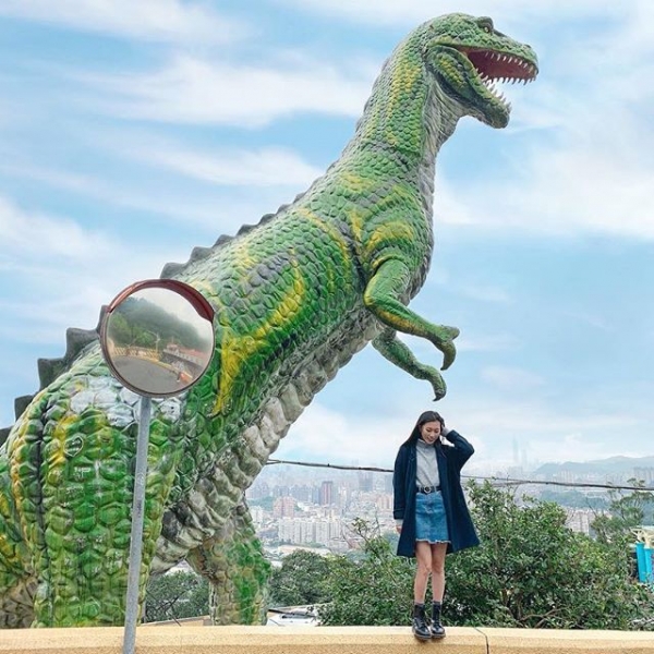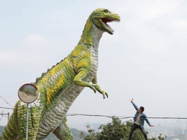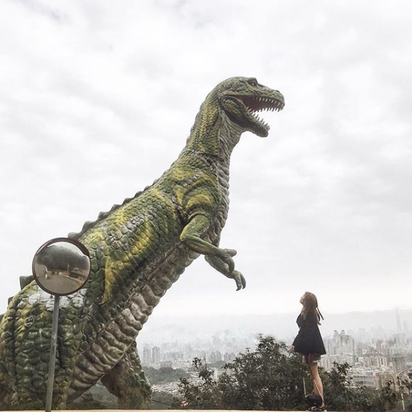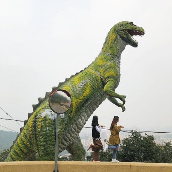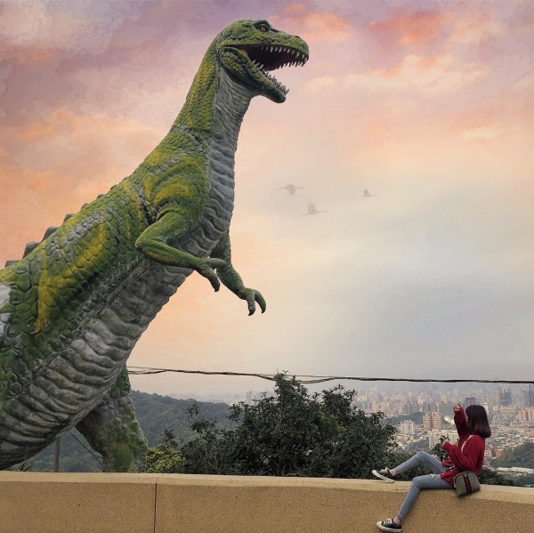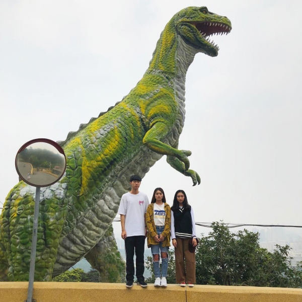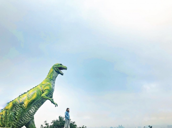 除了這隻網友瘋拍的巨大暴龍,在附近也有其他五種不同品種的恐龍雕像,大家有去的話也別忘了與她們合影喔~