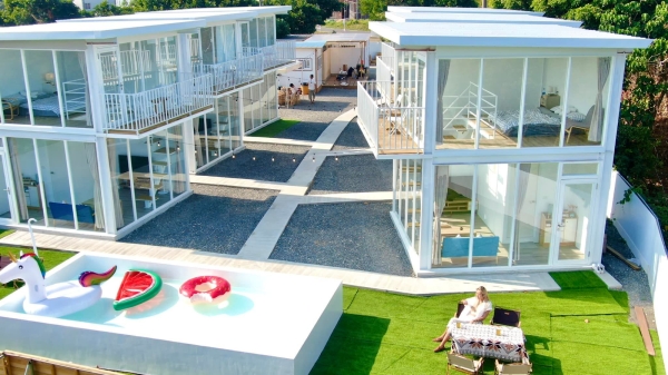 絕美的純白色系包棟別墅,擁有6棟獨立的別墅建築,2人就可包棟入住,每棟最高可4人入住,採用純白色系的獨棟玻璃屋設計,每棟樓高二層,一樓設置客廳與衛浴,二樓為臥室與小型陽台~