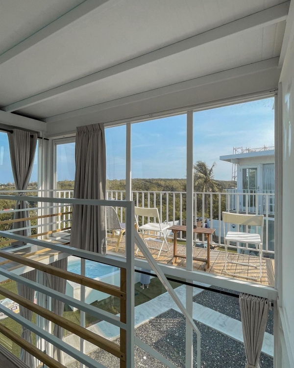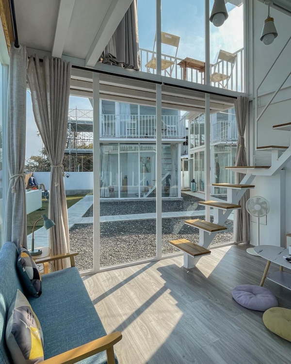 樓中樓的設計,加上整棟皆以玻璃窗打造,採光非常良好,不管白天夜晚都好拍,二樓還有附加露天陽台,可以和旅伴在這裡小酌賞星空,聊聊天都很愜意~