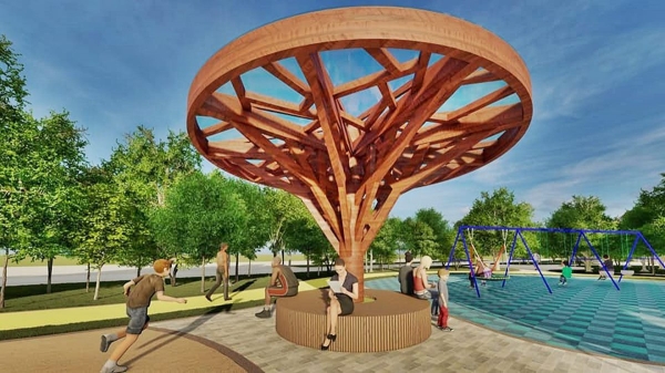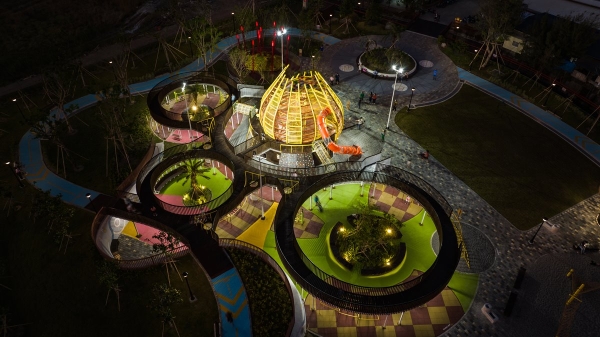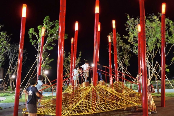在一旁也規畫了大樹休憩亭、環形活動空間、高空步道等遊憩設施,不管是小孩、老人都能來玩樂或休憩。入夜後公園也會啟動照明設備,想要一路從早玩到晚都不是問題!