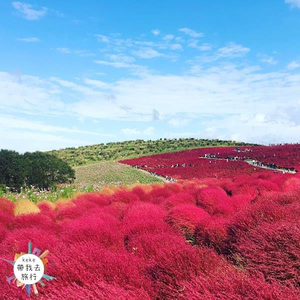 其實還是綠色的掃帚草也挺可愛療癒的,不過一到秋天,約10月中之後,這些可愛的掃帚草會變得紅通通的,一整片圓圓紅紅的超級壯觀!也有「火燒山」之稱唷!除了可愛的掃帚草之外,還能看到很多トンボさん(蜻蜓先生)唷!