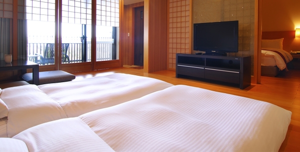 和風館的房型,在陽台設有半露天的獨立溫泉池!面山的房型可以將整片的青山景色映入眼簾!泡在溫泉池裡更加有氣氛,半露天的設計還能望著天空!