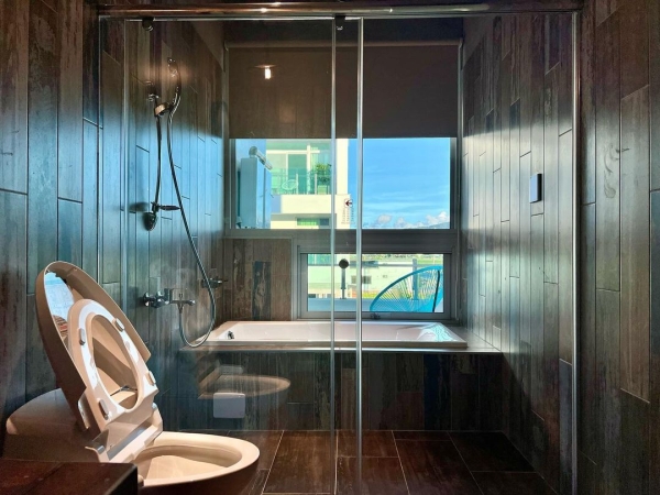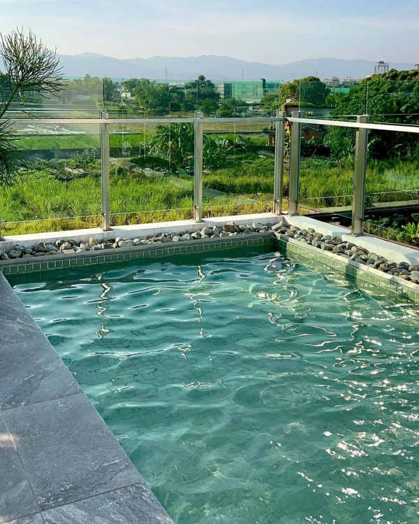 附設浴缸及獨立戲水池,26坪舒適大空間。天氣好時,躺在戲水池邊的躺椅,一邊觀賞風景、一邊感受微風!