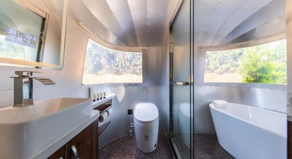 俐落線條搭配大地色系物件與家具,營造低調溫馨的質感,配置豪華浴缸提供露營中獨特體驗,慵懶躺在舒適床舖,沐浴溫暖陽光之中,一杯咖啡的儀式感,喚醒早晨時光,一首輕音樂感受愜意悠閒的度假氛圍,適合親子出遊、好友旅行,滿足野外居家的渴望。