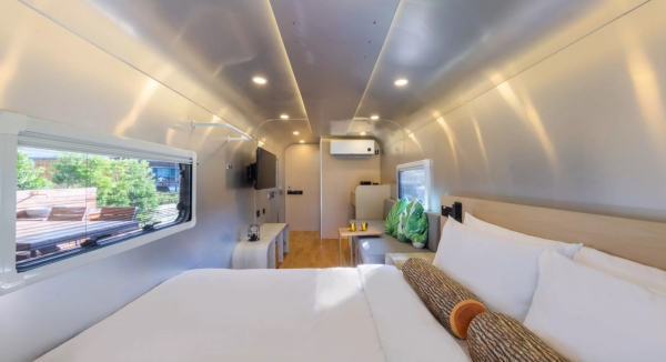 嚮往絕美星空底下,露營的美好隨興,朋趣打造多款豪華露營車,內部包含獨立衛浴空間、舒適床寢、智能設備及專屬南方松木棧板,以活潑設計與自然特色融合妝點空間,融入木質色調傳遞溫潤樸實氛圍,透過自然光影交疊撒落,營造愜意悠閒的度假氛圍,將奢華和露營完美結合,省去大費周章的前置準備,一卡皮箱即可入住饗受一泊四食奢華露營體驗,遠離城市喧囂享受被滿山綠意環繞的休閒度假,滿足野外居家的渴望。