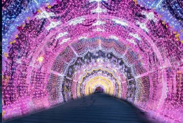 採用金屬結構塑性,以低電壓LED防水燈串為主, 冰晶吊飾為輔,巧妙的佈置方式,適度的控制整體燈光亮度,呈現最完美的環境氛圍,讓漫步在光廊之中成為一種舒適享受。