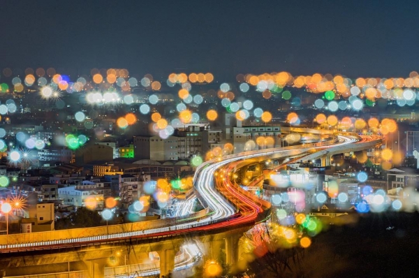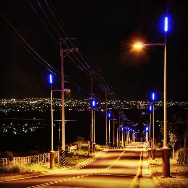 當夜晚來臨沿路亮起街燈,串起的藍光像是一條美麗的藍寶石項鍊,有時蜿蜒有時筆直,吸引不少民眾來到這裡欣賞城市夜景,又有「藍色公路」之美名。