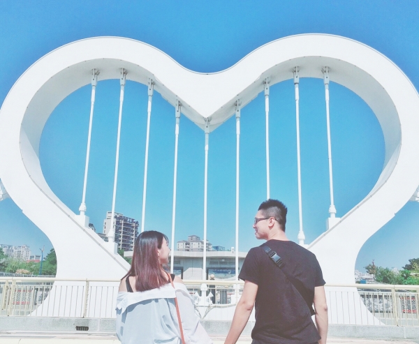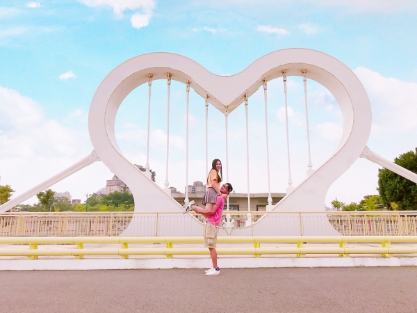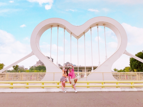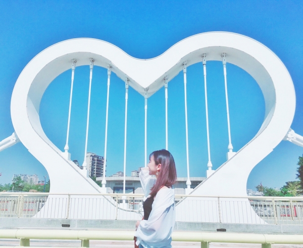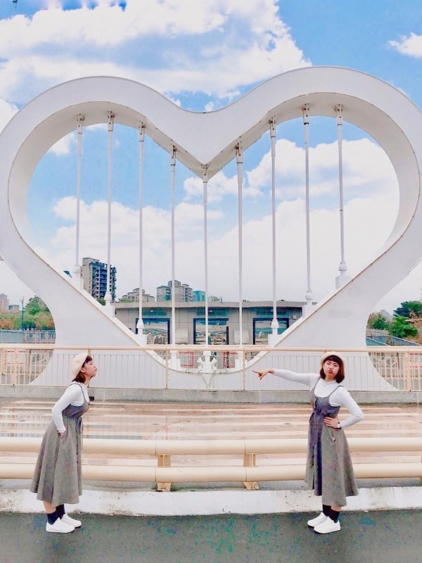 「西川橋」又更常被稱為愛心橋,因為它最大的特色是橋上有著純白色的愛心形狀橋身,加上白色細線獲得愛心豎琴的美名,遠遠看也有點像兩隻白天鵝互相望著彼此的感覺~十分浪漫的景觀特色也讓這裡成為情侶們必須朝聖的閃照蒐集之地啦!