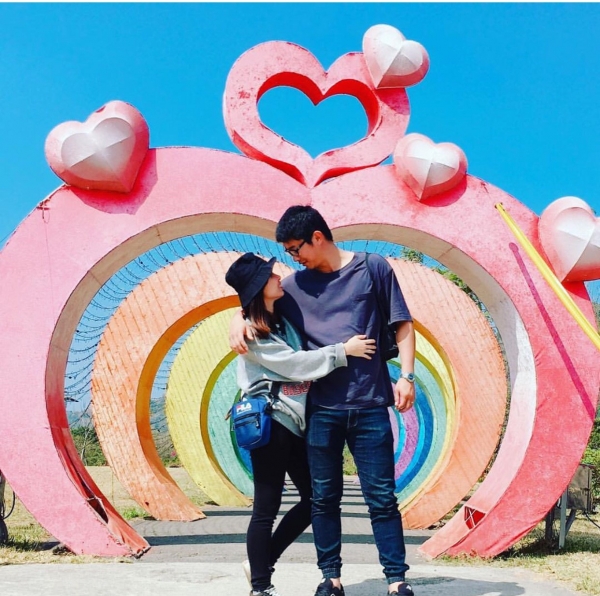 在愛心彩虹門放閃光真是太浪漫了~~~