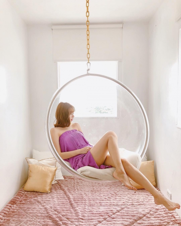 Gold DeSign Hotel讓人較為印象深刻的是從窗台就可以看見無遮蔽物、超大片美景的海景房,但其實有個房型是內有透明球椅子的~璇校在天花板上拍起來超美的吧~在自己房間裡就可以沒壓力的拍到滿意為止了~~~