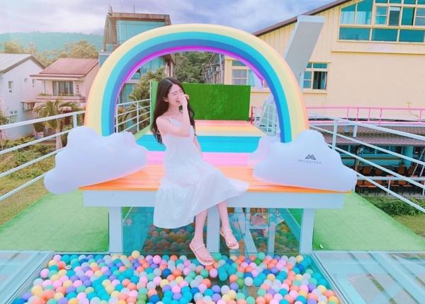 這個最夢幻的階梯,四周懸空、沒有扶手,全程都需要依照工作人員的指示進行喔~這個全新設施「彩虹天梯」只有平日開放(14:30~17:30),大家要留意去玩的時間喔!