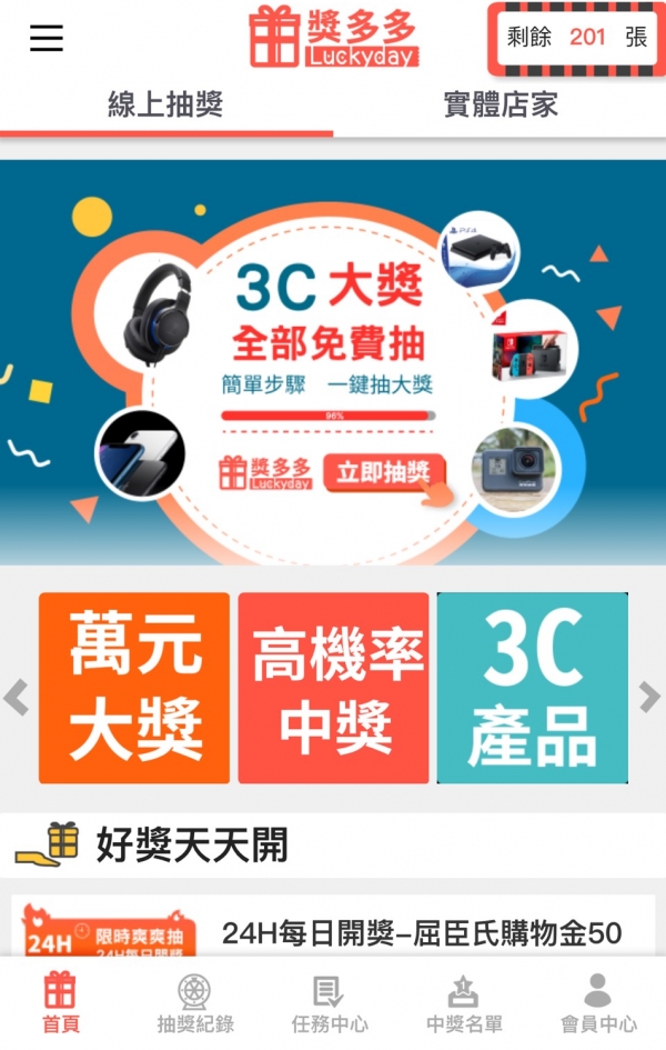 其實獎多多網站不只有一中街美食,還有超多萬元大獎等著你抽!