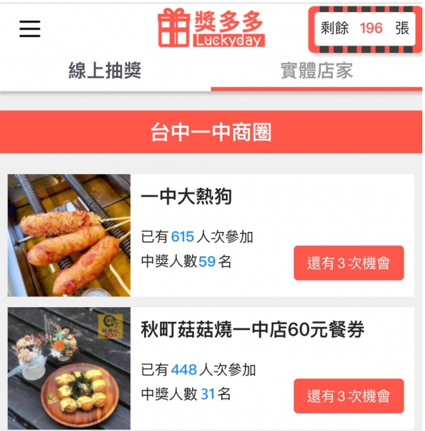 於網頁點選實體店家,就可以直接選擇想要的店家開始刮囉,每日每一店家限刮三次!中獎機率高達20%,等於刮五次就會中一次!
