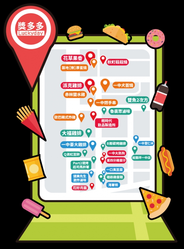 獎多多規劃一系列尋寶地圖,目的就是讓大家更輕鬆的用0元吃爆一中街,現在就趕快規畫好路線出發,最重要的是票卷要先收集好啦~