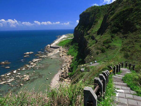 望幽谷步道走起來輕鬆而且景色超棒可欣賞到東北角獨特的海蝕岸、基隆嶼和八斗子漁港等。