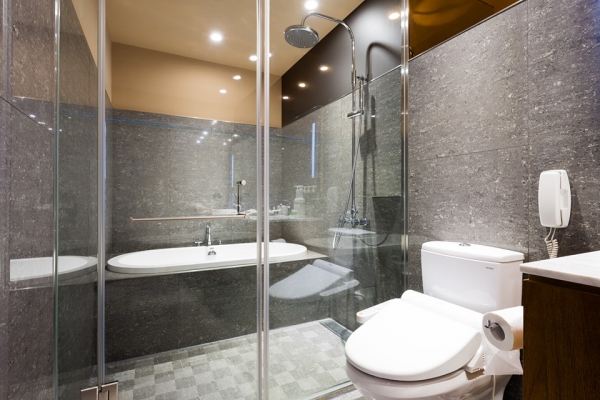 衛浴設備是不會讓整個浴室都溼答答的乾濕分離,而且還有浴缸!灰白色調的簡約質感,這個價格真的太超值了!