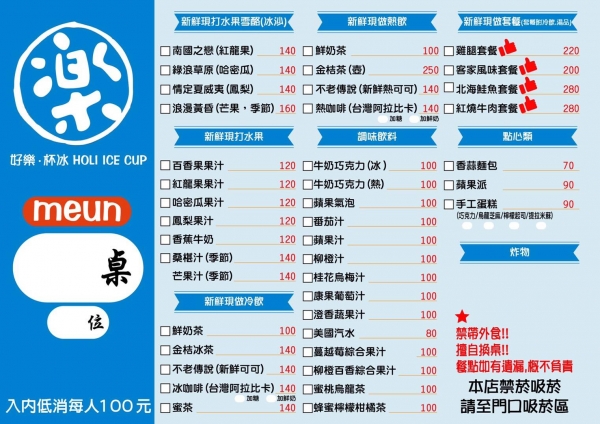 餐廳最新菜單喔~店員會拿著菜單幫你找位子(店內每人低消100)餐廳內每一個食物都很用心製作,可以說是風景漂亮食物又好吃的下午茶餐廳!