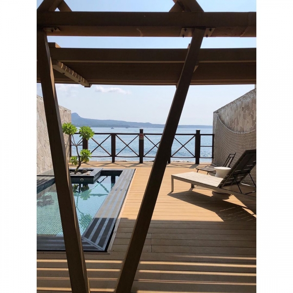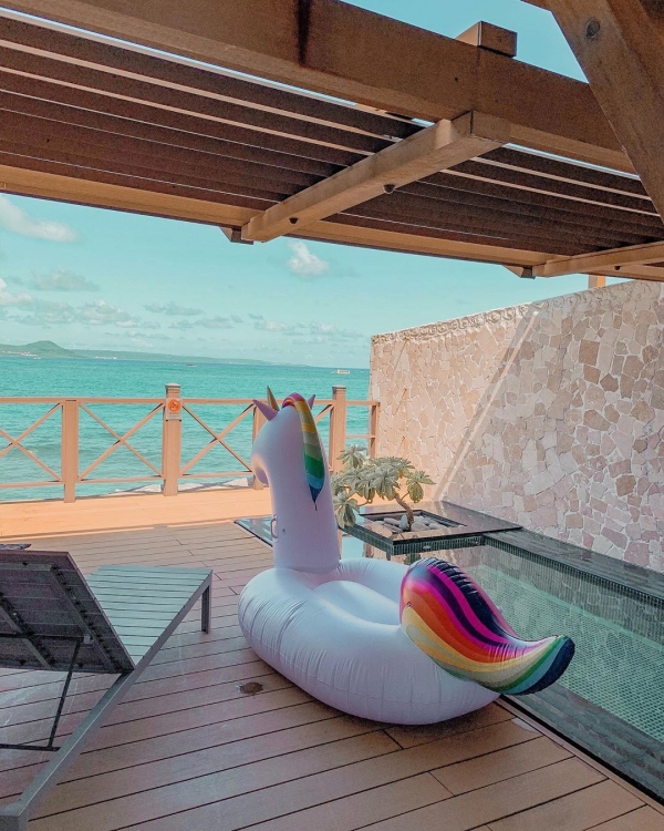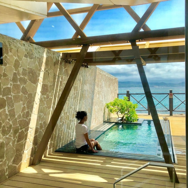 無邊際泳池與大海直接融合在一起,心情瞬間變得好自由。